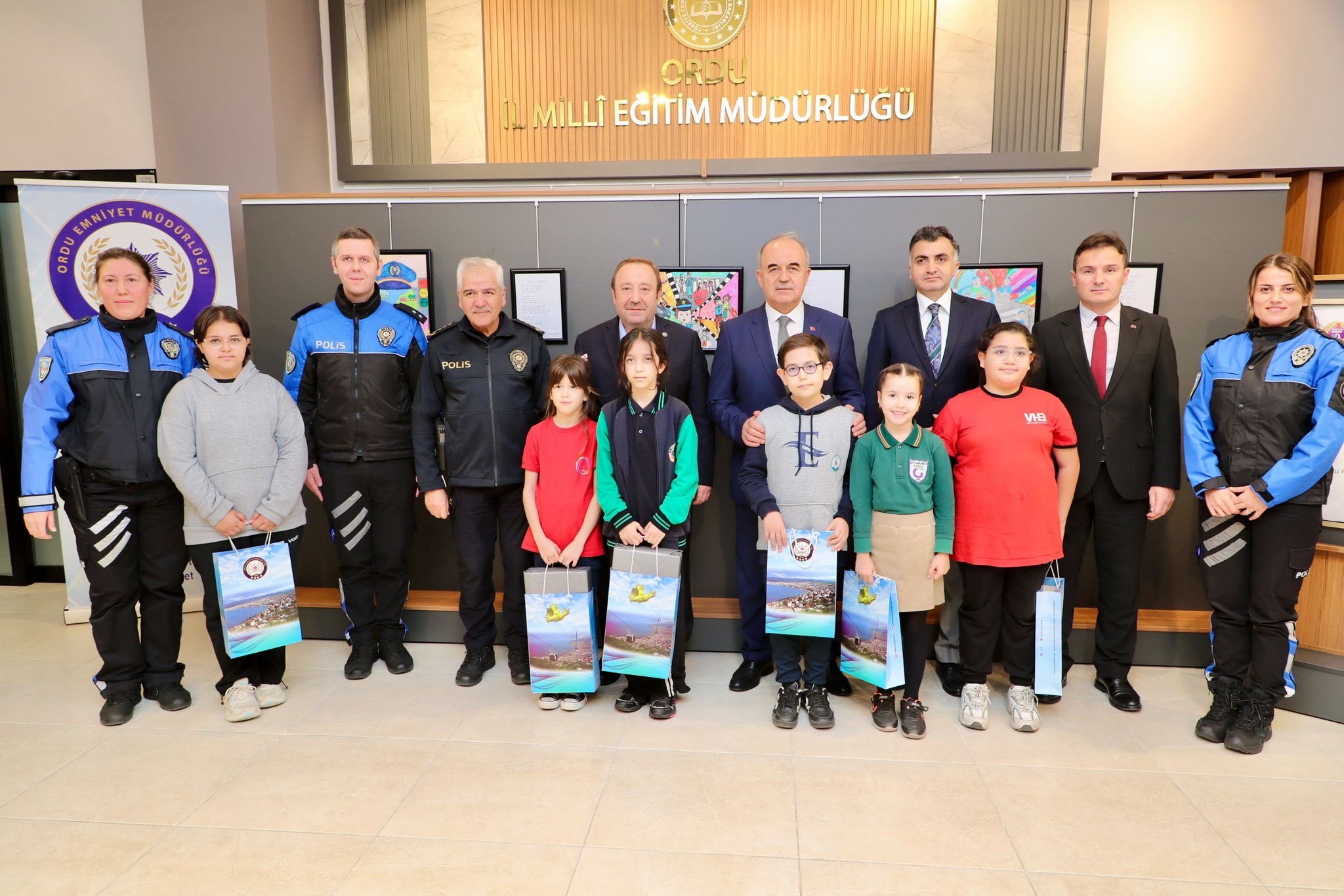 Akabinde Vali Muammer Erol, İl Emniyet Müdürü Ahmet Acar ve İl Millî Eğitim Müdürü Mehmet Fatih Vargeloğlu ile birlikte, “Huzurlu Şehrin Bilgili Çocukları” adlı ÇOGEP projesi kapsamında düzenlenen "Benim Polisim" konulu yarışmanın ödül törenine katıldı.