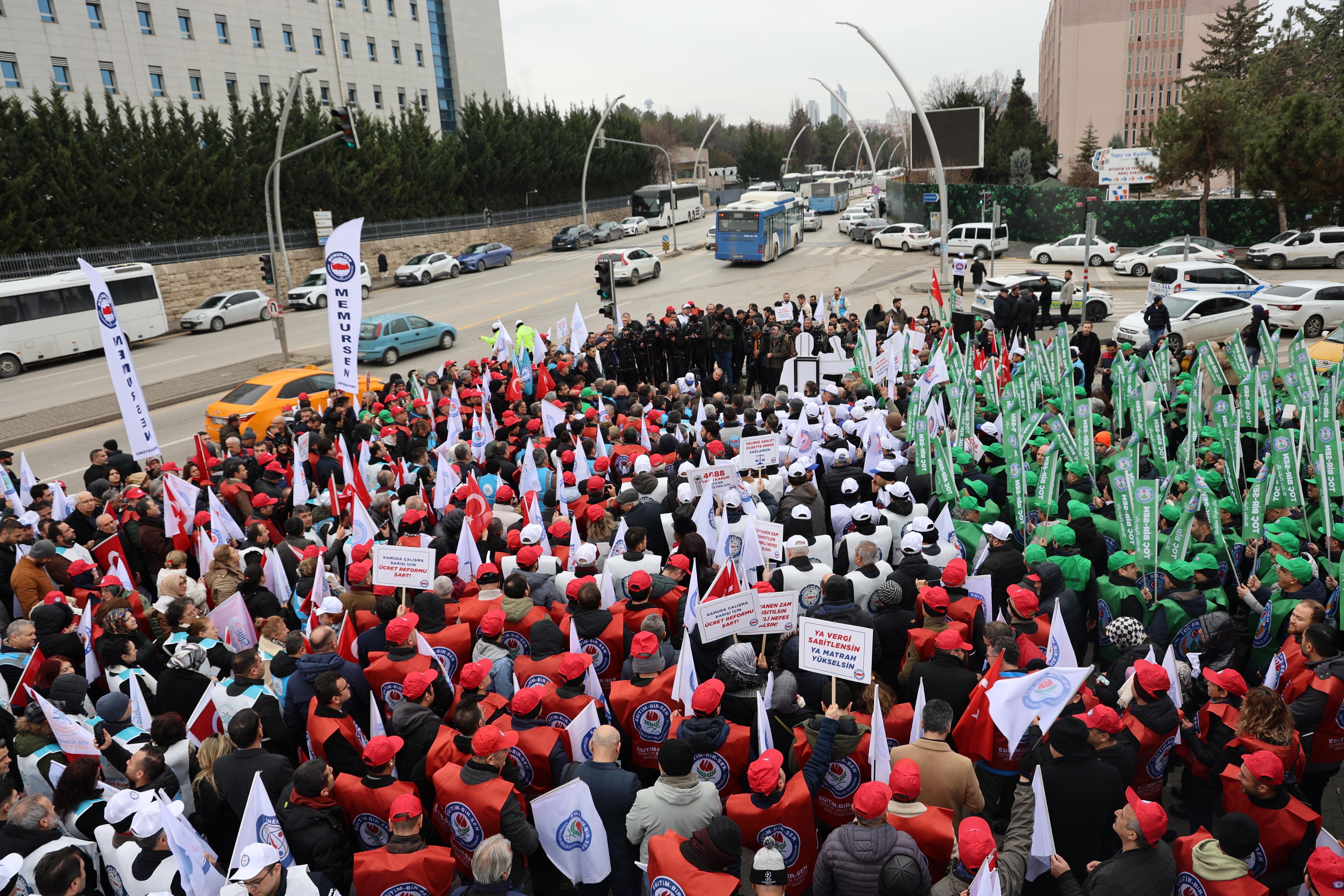 Kamu görevlileri adına yılın ilk maaş gününde Memur-Sen ve konfederasyon çatısı altındaki sendikalar, Ankara’da Hazine ve Maliye Bakanlığı ile tüm illerde meydanlara çıkarak ücret adaletsizliğine karşı eylem yaptı. Genel Başkanı Ali Yalçın eylemde yaptığı konuşmada, toplu sözleşme sürecinde dile getirdikleri itirazların ve eylemlilik iradesinin kararlılıkla süreceği mesajı verdi.